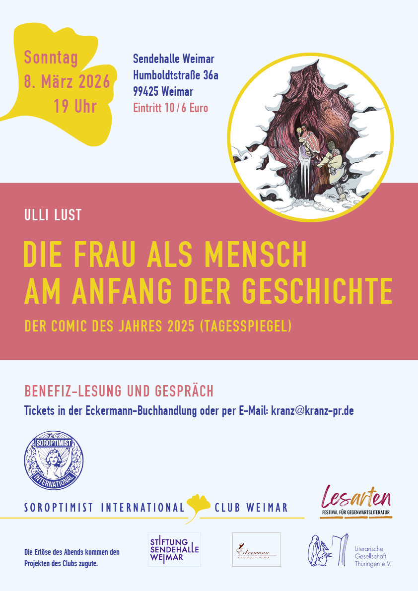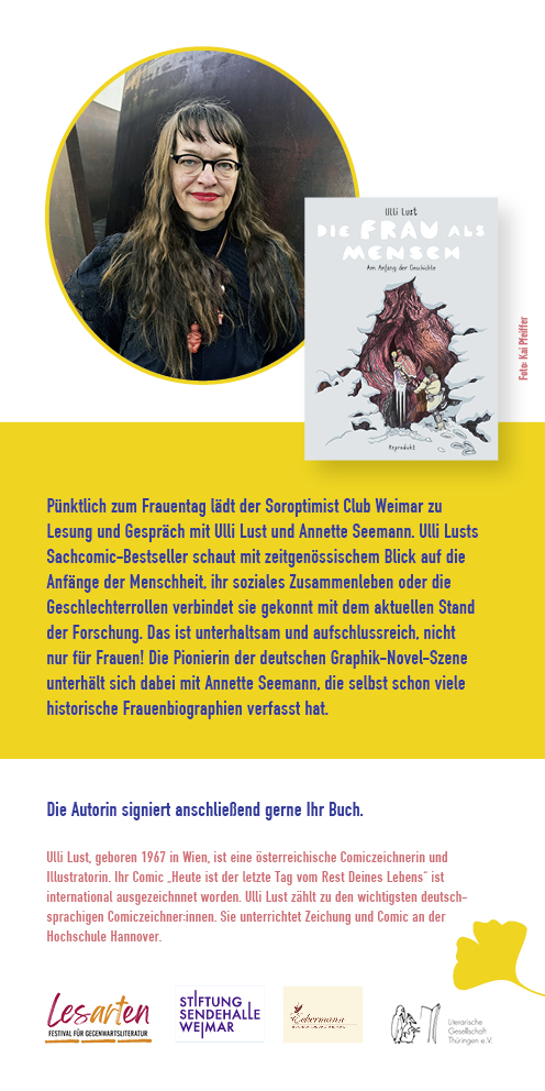 Unsere Unterstützerinnen vom Soroptimist Club Weimar freuen sich auf Ulli Lust, Zeichnerin und Cartoonistin aus Wien, im Gespräch mit Annette Seemann.