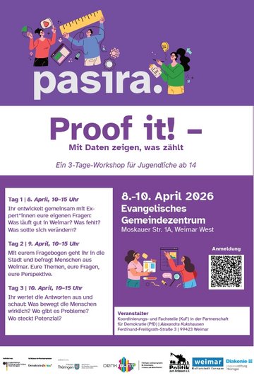 Gemeinsam mit dem Team von Politik zum Anfassen e.V. führt die Fachstelle pasira. – eine partizipative Situations- und Ressourcenanalyse – durch. 30 Jugendliche entwickeln eigene Fragen rund um das Leben in Weimar: Was läuft gut? Was fehlt? Was sollte sich verändern?