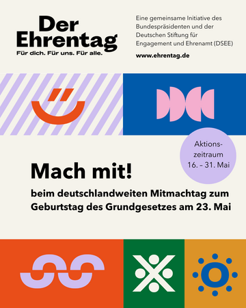 Für eine Aktion könnt Ihr bis zu 500 € beantragen. Wie das geht, erfahrt Ihr z.B. am 23.2.26 bei der virtuellen Fördermittel-Infoveranstaltung: #DSEEinformiert: Aktionsförderprogramm Ehrentag - Der Ehrentag. Für dich. Für uns. Für alle.